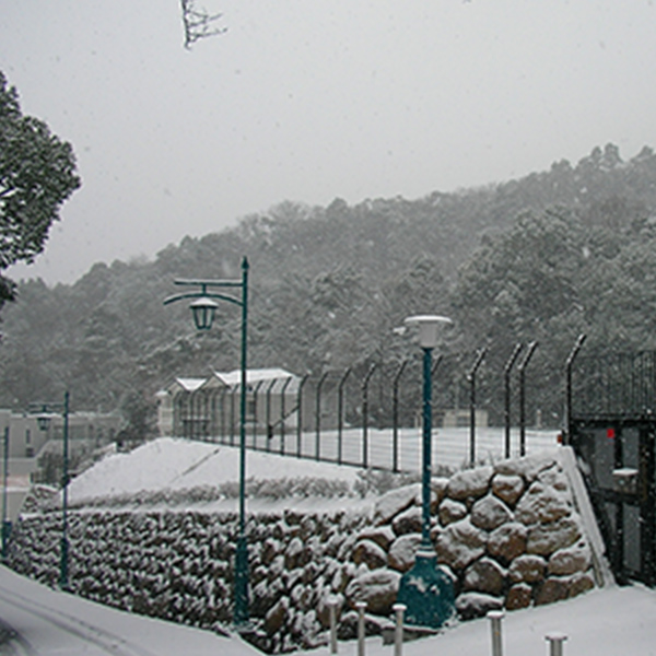 山を大切にし、自然を守り、環境を重視したまちづくりを進めてきた六麓荘ですが、残念ながらこの80年のあいだに自然は確実に後退してきました。当時を知る一人の古老の話、「名物の赤松林が消滅してしまった。わずかに名残りをとどめているのはバス道沿いのK邸に高くそびえる数本だけ。庭先にポコポコ顔をだしていた松茸は今は無く、ピョコピョコと走り回っていたウサギやキツネはどこにいってしまったのか。ミミズクの鳴き声もあと何年か、このままでは春の目覚まし時計の鶯だって来なくなる日がくるかもしれない。」人間の営みにより自然が後退するのはある程度仕方がないでしょうが、そのスピードをゆるめる努力をしないと自然はあっという間に消えてしまうかもしれません。樹木を切り倒したときには必ず代わりのものを植えるその甲斐あって、落ちついた町並みを維持しているだけでなく、季節の移ろいに木々の若葉や紅葉を眺めることができますし蝶が飛び交い鳥が梢で囀るのを楽しむこともできます。風が吹くと落葉が舞うことも、いろんな虫が顔を出すこともありますが、自然が身近にあるという街ならではの姿です。ただし、山から降りてくる先住民の猪には注意が必要です。